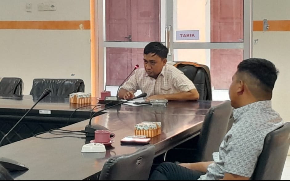 Rapat yang di pimpin wakil ketua komisi I, Abdul Hamid. Hadir kepala Disnakertrans, Nizma Sanad beserta jajarannya.