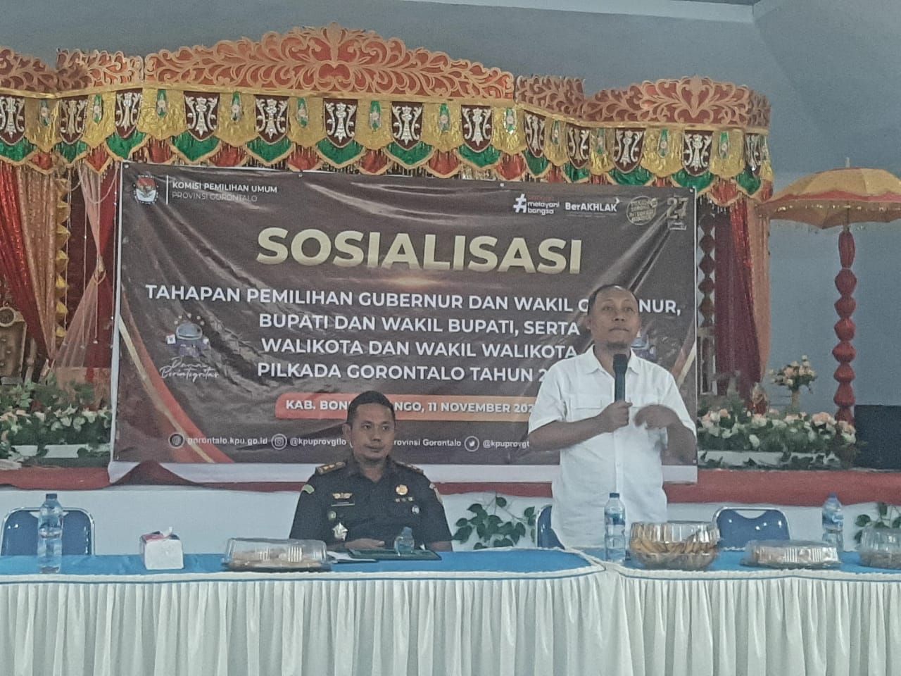 Untuk itulah, Komisi Pemilihan Umum (KPU) Provinsi Gorontalo duduk bersama seluruh ketua-ketua BPD se Kabupaten Bone Bolango dalam acara Sosialiasi Tahapan Pemilihan Gubernur dan Wakil Gubernur, Bupati dan Wakil Bupati serta Walikota dan Wakil Walikota Pilkada Gorontalo 2024, yang berlangsung di Aula Bandayo Limbui Kecamatan Kabila Bone Bolango. Senin (11/11/2024).