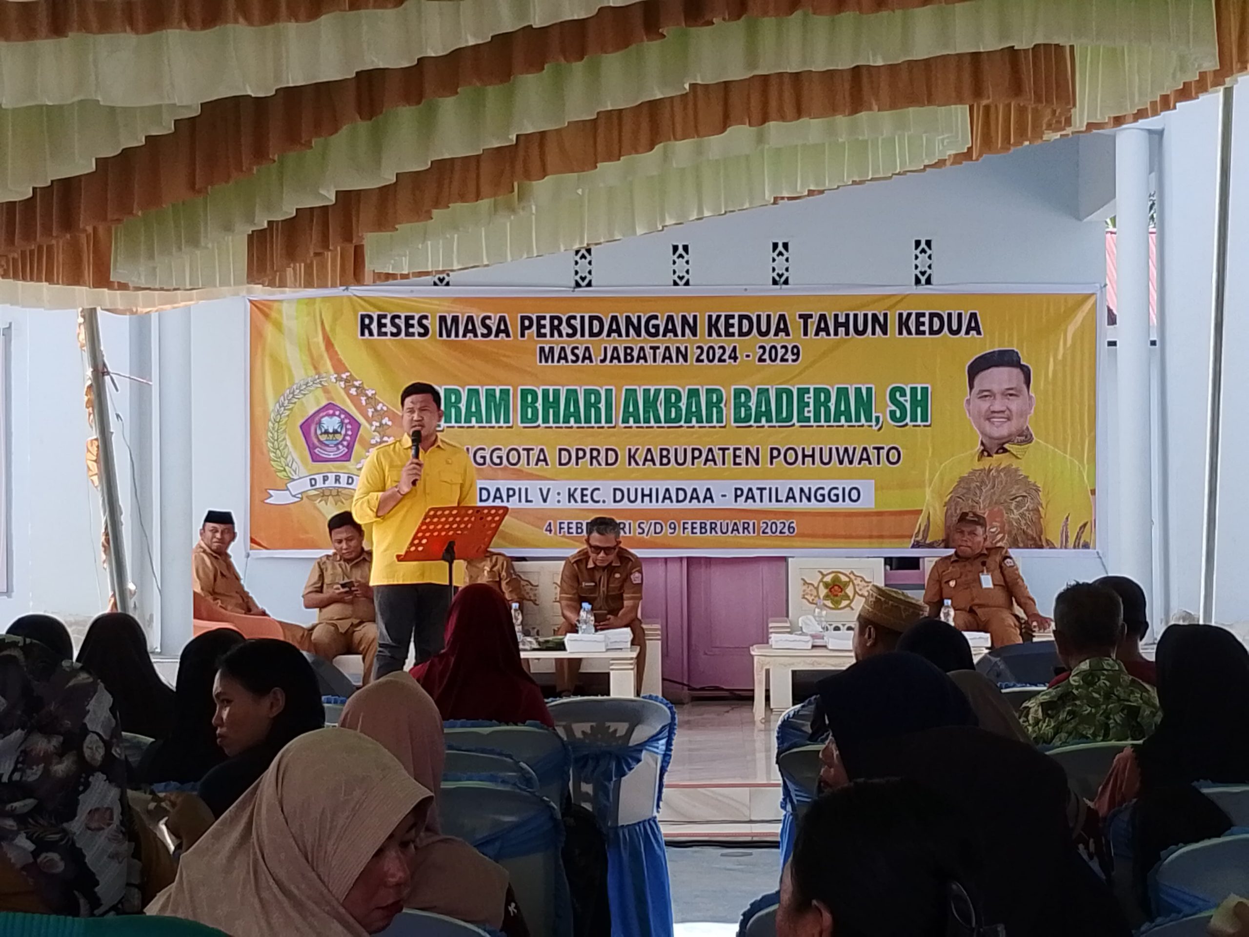 Gorontalo.tv.Pohuwato – Anggota DPRD Kabupaten Pohuwato, Iqram Akbar Baderan, menegaskan komitmennya untuk terus memperjuangkan aspirasi masyarakat saat menggelar reses masa persidangan kedua tahun kedua masa jabatan 2024–2029. Kegiatan tersebut berlangsung di Desa Bulili, Kecamatan Duhiadaa, Kabupaten Pohuwato, Senin (9/2/2026).