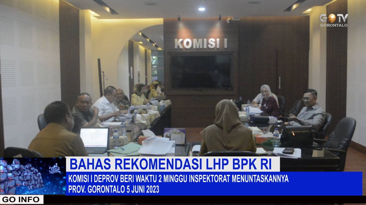 GORONTALO.TV.Deprov – Komisi I DPRD Provinsi Gorontalo memberi batas waktu dua minggu kepada inspektorat Provinsi Gorontalo untuk bekerja menyelesaikan 15 rekomendasi dari Laporan Hasil Pemeriksaan BPK RI tahun anggaran 2022 di sejumlah OPD Pemerintah Provinsi Gorontalo yang di anggap bermasalah.