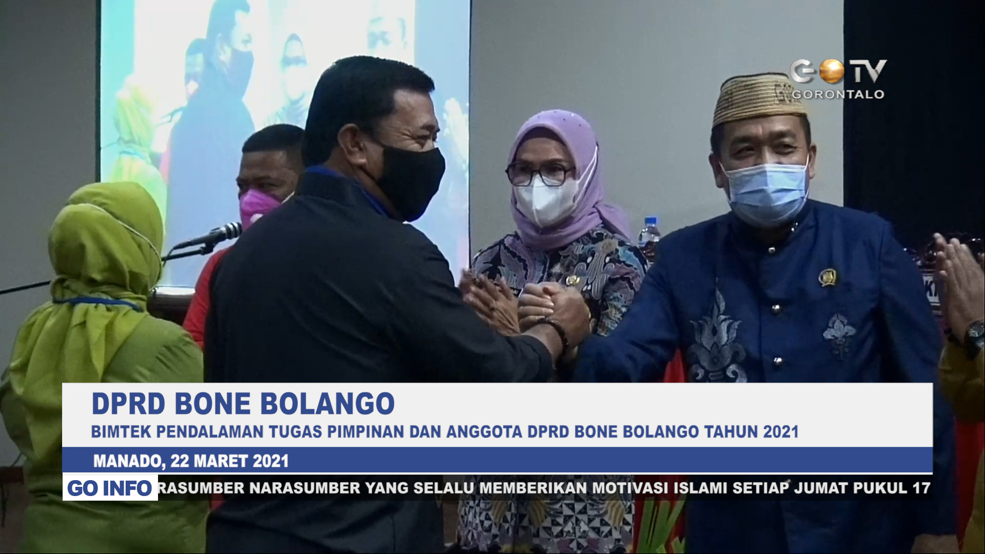GOTV – DPRD Kabupaten Bone Bolango mengadakan kegiatan Bimbingan Teknis Pendalaman Tugas Pimpinan dan Anggota DPRD Kabupaten Bone Bolango tahun 2021. Kegiatan yang berlangsung di Kota Manado, Sulawesi Utara, dihadiri Wakil Bupati Bone Bolango Merlan Uloli.