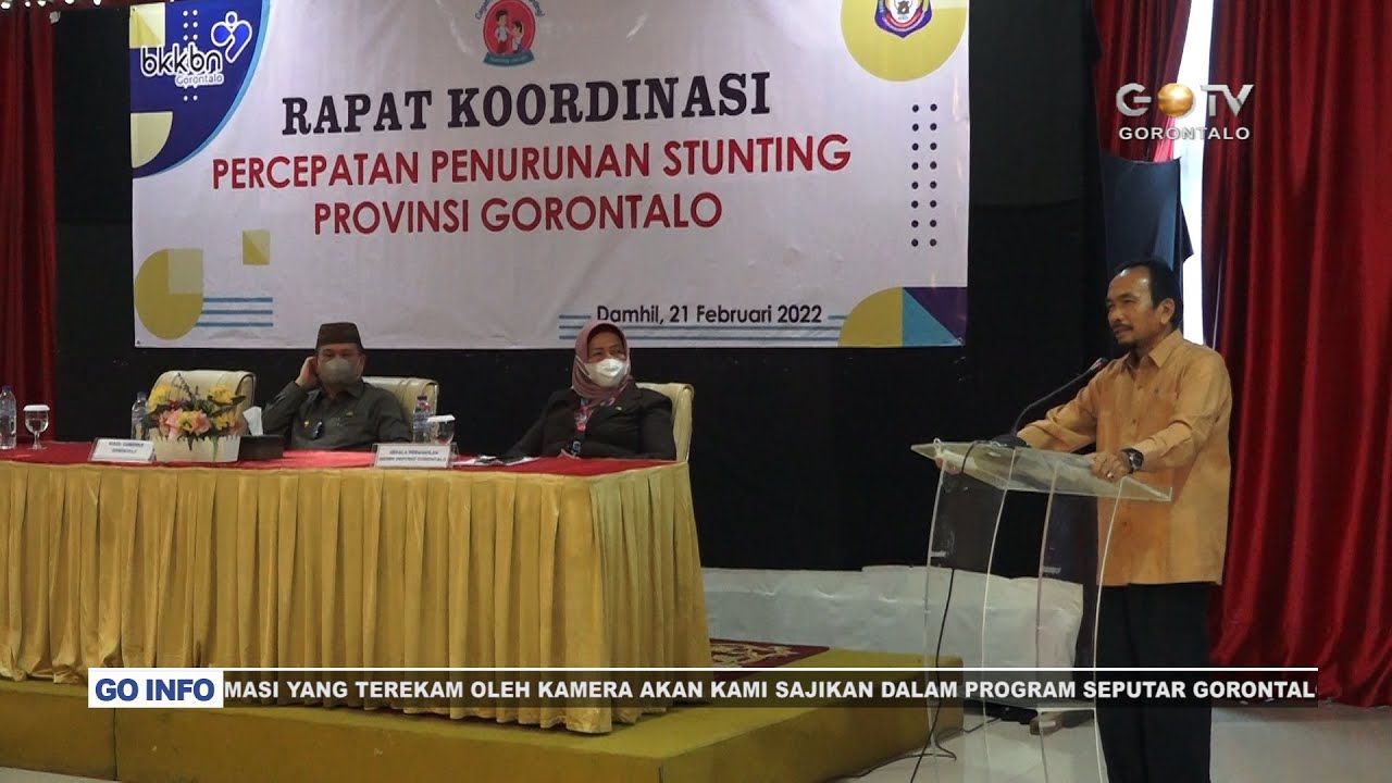 GOTV – Pemerintah Provinsi Gorontalo bekerjasama dengan BKKBN Perwakilan Provinsi Gorontalo menargetkan penurunan angka Stunting hingga mencapai 14persen dalam kurun dua tahun ke depan. Hal tersebut seperti yang diungkapkan oleh Wakil Gubernur Gorontalo Idris Rahim, di kegiatan Rapat Koordinasi Percepatan Penurunan Stunting, yang berlangsung di Hotel Damhill Kota Gorontalo, Senin (21/2/2022).
