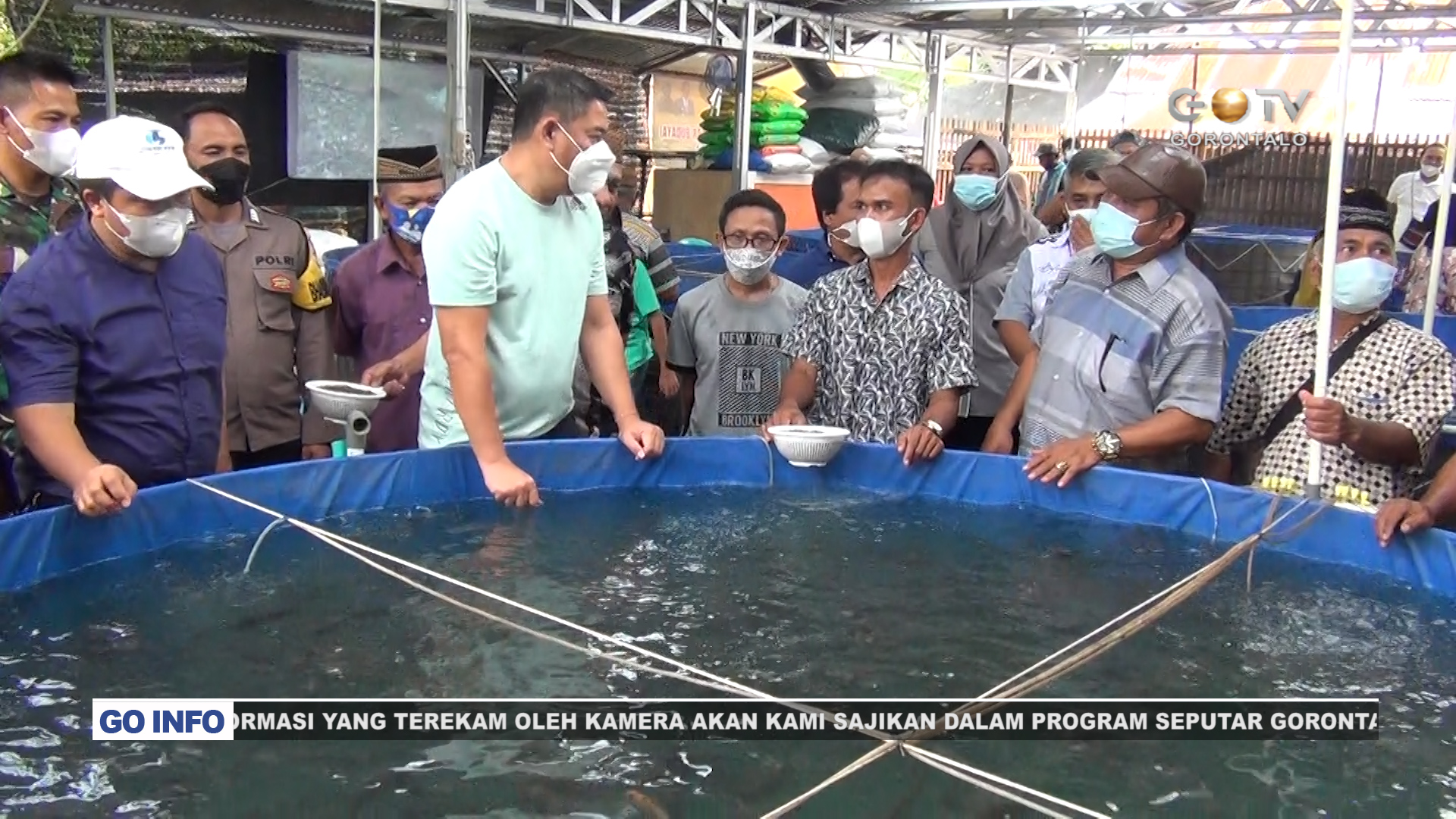 GOTV – Bupati Bone Bolango Hamim Pou meresmikan Bioflok budidaya ikan air tawar di Desa Huntu Barat, Kecamatan Bulango Selatan. Peresmian ditandai dengan pengguntingan pita.