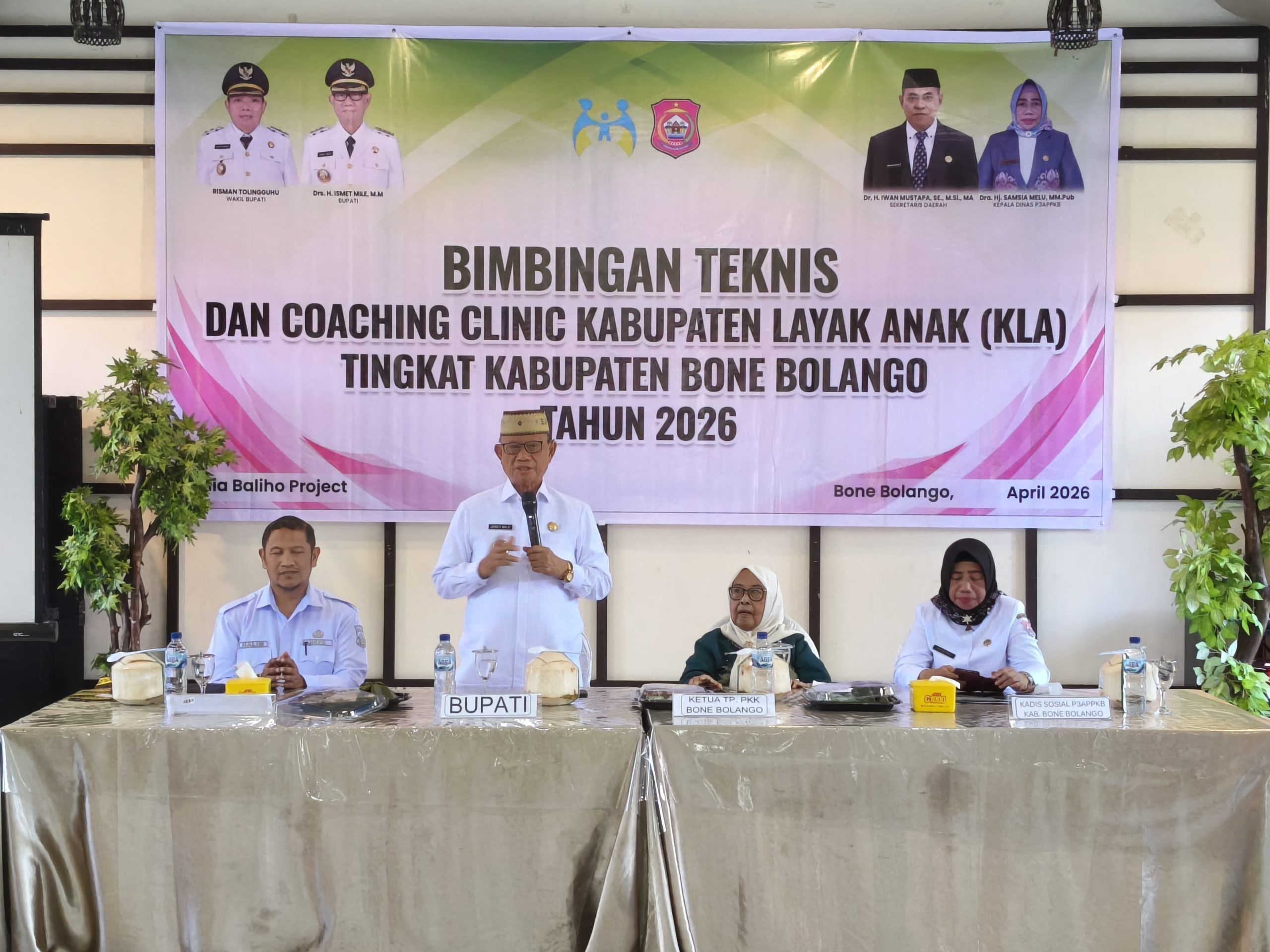 GOTV.Bone Bolango – Bupati Bone Bolango, Ismet Mile, menegaskan pentingnya menjadikan pendidikan anak sebagai prioritas utama dalam masa pertumbuhan. Hal ini disampaikannya saat membuka kegiatan Bimbingan Teknis (Bimtek) dan Coaching Clinic Kabupaten Layak Anak (KLA) tingkat Kabupaten Bone Bolango, yang berlangsung di RM Meranti, Rabu (15/4/2026).