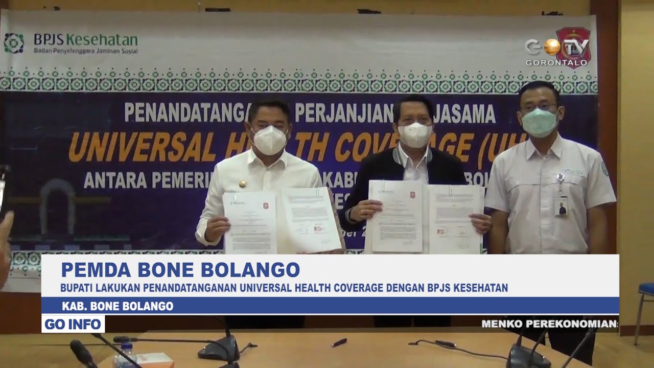 GORONTALO.TV.BoneBol –Bupati Bone Bolango Hamim Pou melakukan penandatanganan perjanjian kerjasama antara Pemerintah Kabupaten Bone Bolango dengan Badan Penyelenggara Jaminan Sosial (BPJS) Kesehatan. Penandatanganan yang berlangsung diruang bupati (senin, 4/10/2021), mengenai kepesertaan perlindungan kesehatan bagi masyarakat di Kabupaten Bone Bolango.