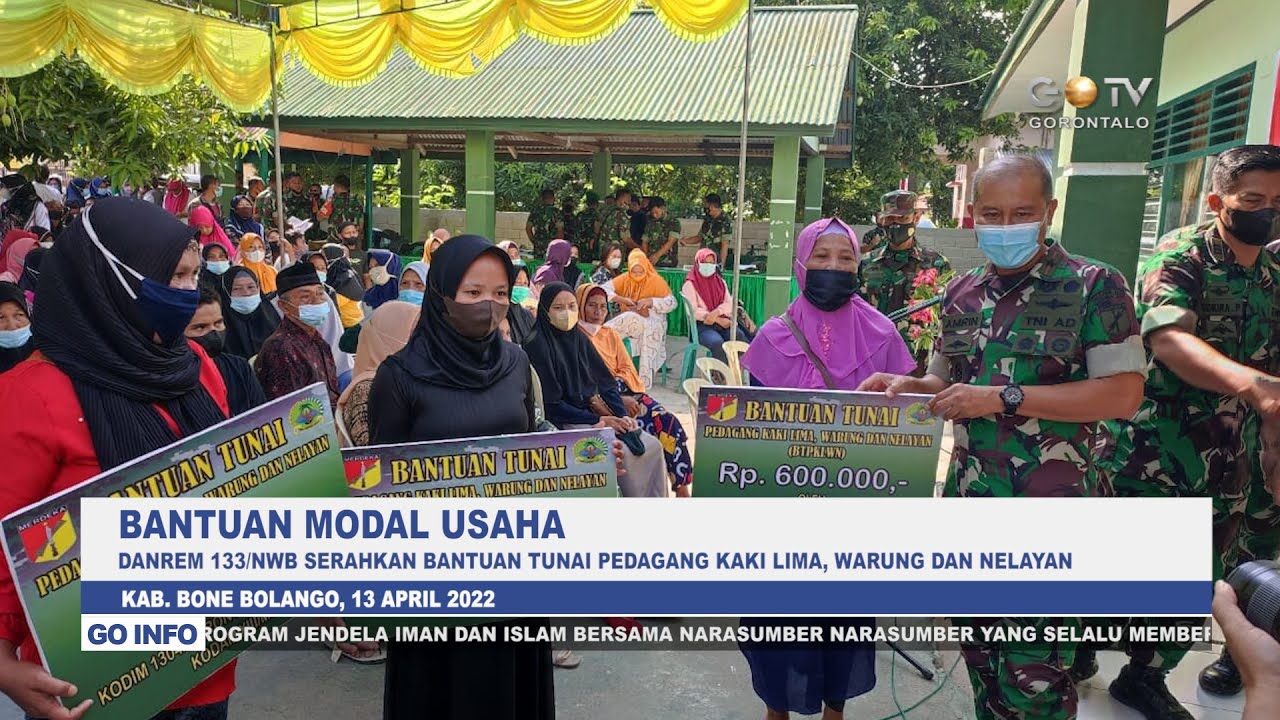 GOTV – Komandan Resor Militer (Danrem) 133/Nani Wartabone Brigadir Jenderal (Brigjen) TNI Amrin Ibrahim,. S.IP menyerahkan secara simbolis Bantuan Tunai Pedagang Kaki Lima, Warung dan Nelayan (BTPKL-WN) kepada masyarakat di Kabupaten Bone Bolango. Penyaluran bantuan yang dilakukan oleh Kodim 1304 Gorontalo berlangsung di Koramil 04/Tapa.