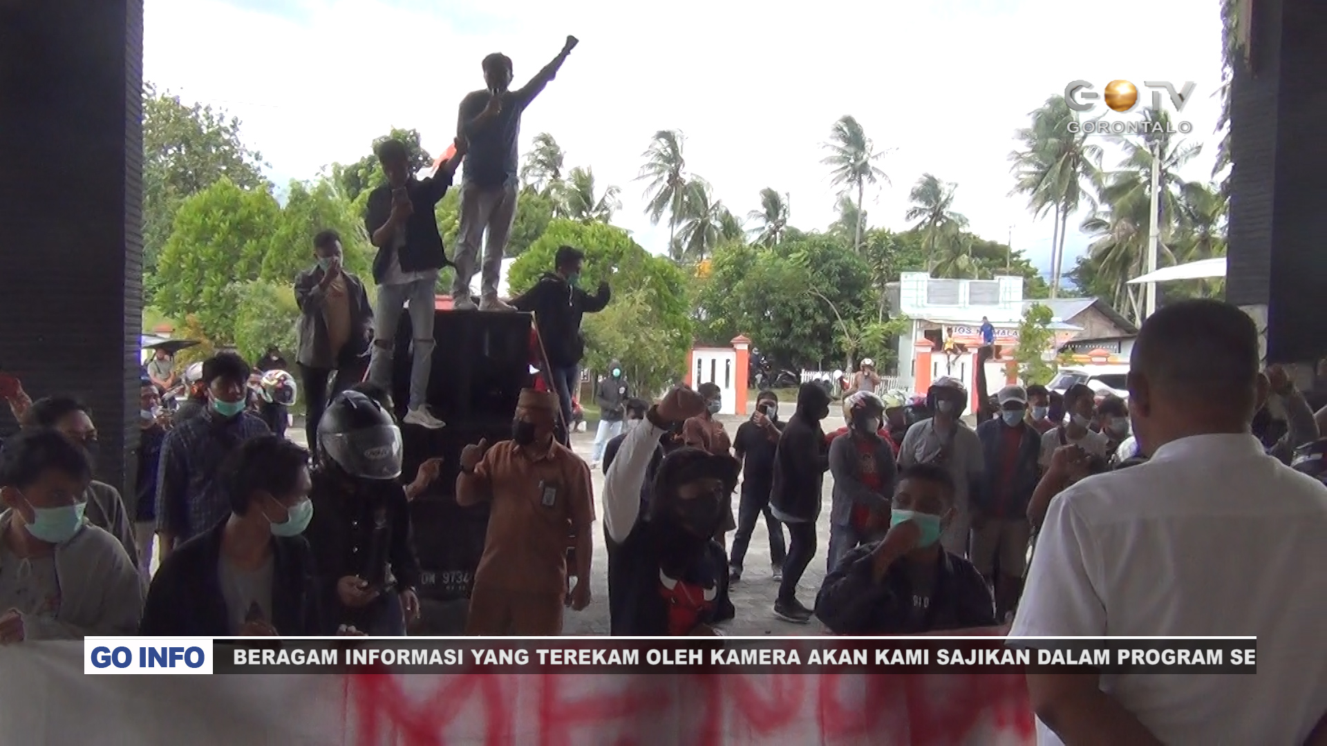 GOTV – Aksi Demo yang mengatasnamakan mahasiswa dan para penambang liar dikawasan Suwawa Timur melakukan orasi dihalaman Kantor DPRD Bone Bolango. Masa aksi menyampaikan tuntutannya dihadapan Ketua DPRD Bone Bolango Halid Tangahu, dan anggota dewan daerah pemilihan Suwawa, Usman Hulopi.