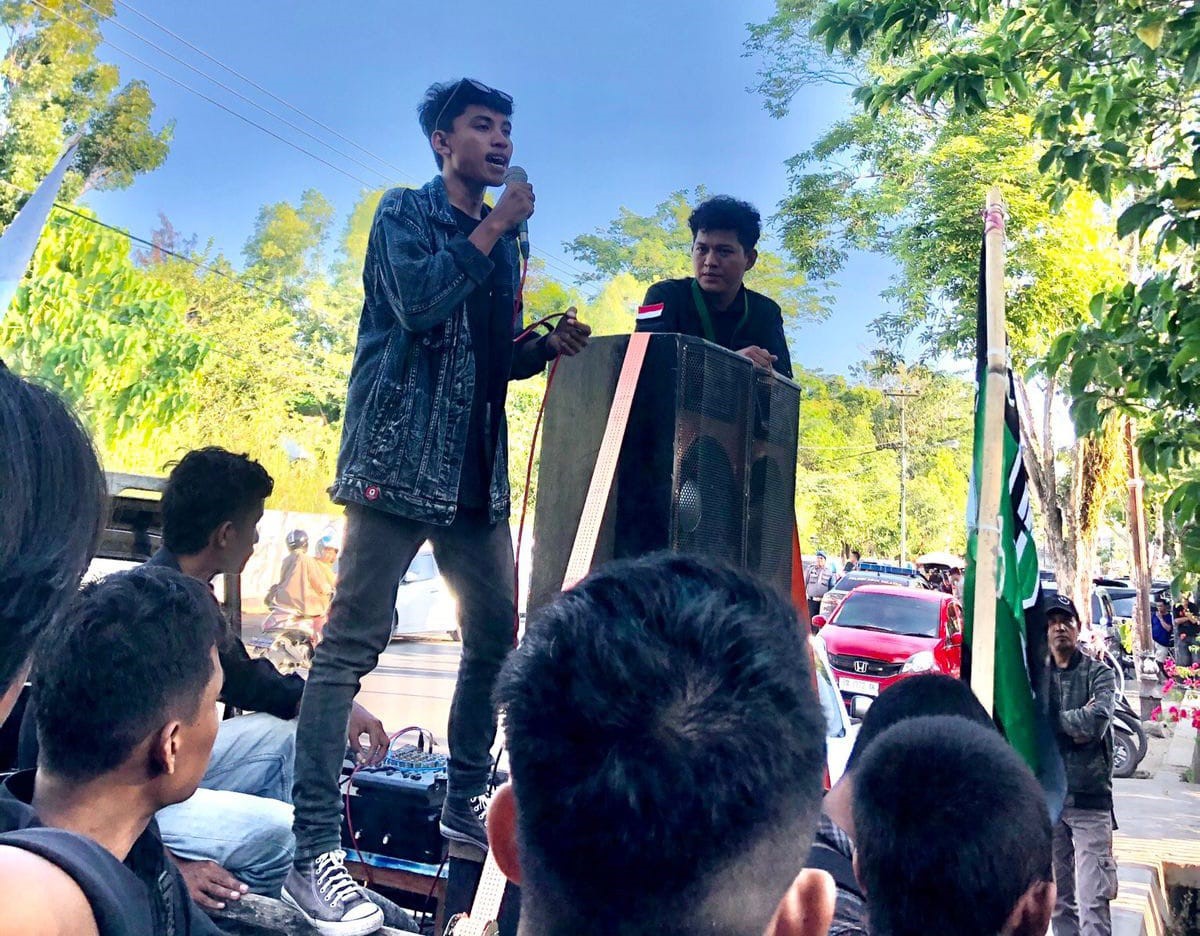 Massa aksi yang terdiri dari unsur mahasiswa pemuda beserta masyarakat tersebut menyampaikan tuntutannya yang salah satunya adalah mendesak Bawaslu Kabupaten Bone Bolango untuk segera menindak beberapa Baliho Merlan Uloli selaku Bupati Bone Bolango yang masih terpasang di beberapa Instansi Pemerintahan dan di Jalan Raya wilayah Bone Bolango.