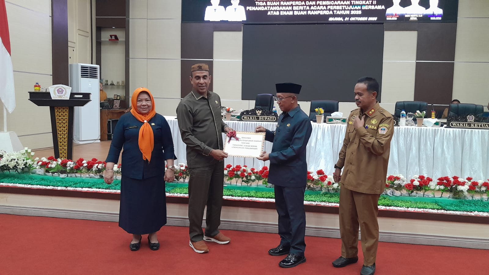 Adapun enam Ranperda yang disetujui pada pembicaraan tingkat II adalah sebagai berikut:
