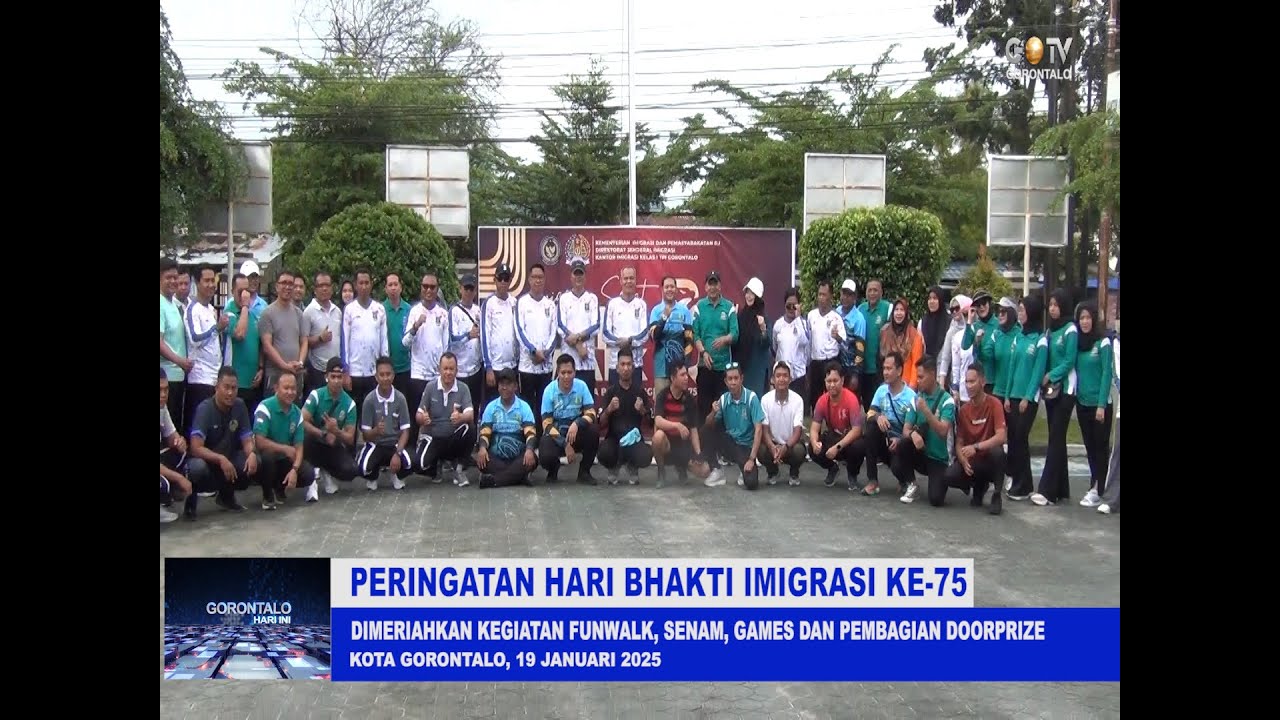 Gorontalo.tv.Network.Gorontalo – Dalam rangka memperingati Hari Bhakti Imigrasi yang ke-75 tahun, Kantor Imigrasi Kelas 1 TPI Gorontalo mengadakan Fun Walk yang diikuti seluruh jajaran Kanwil Kementerian Hukum, Kanwil Ditjen Imigrasi Gorontalo dan Kanwil Ditjen Kemasyarakatan Gorontalo. Jalan Santai yang mengambil start dan finis di kantor Imigrasi Kelas 1 TPI Gorontalo, Minggu (19/1/2025) melewati beberapa ruas jalan di sekitar kantor Imigrasi Gorontalo.
