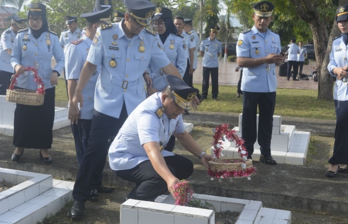 Pelaksanaan upacara, ziarah dan tabur bunga di Taman Makam Pahlawan Pentadio diikuti oleh para Pimpinan Tinggi Pratama dan perwakilan pejabat dari tiap-tiap Unit Pelaksana Teknis dilingkungan Kanwil Kemenkumham Gorontalo.