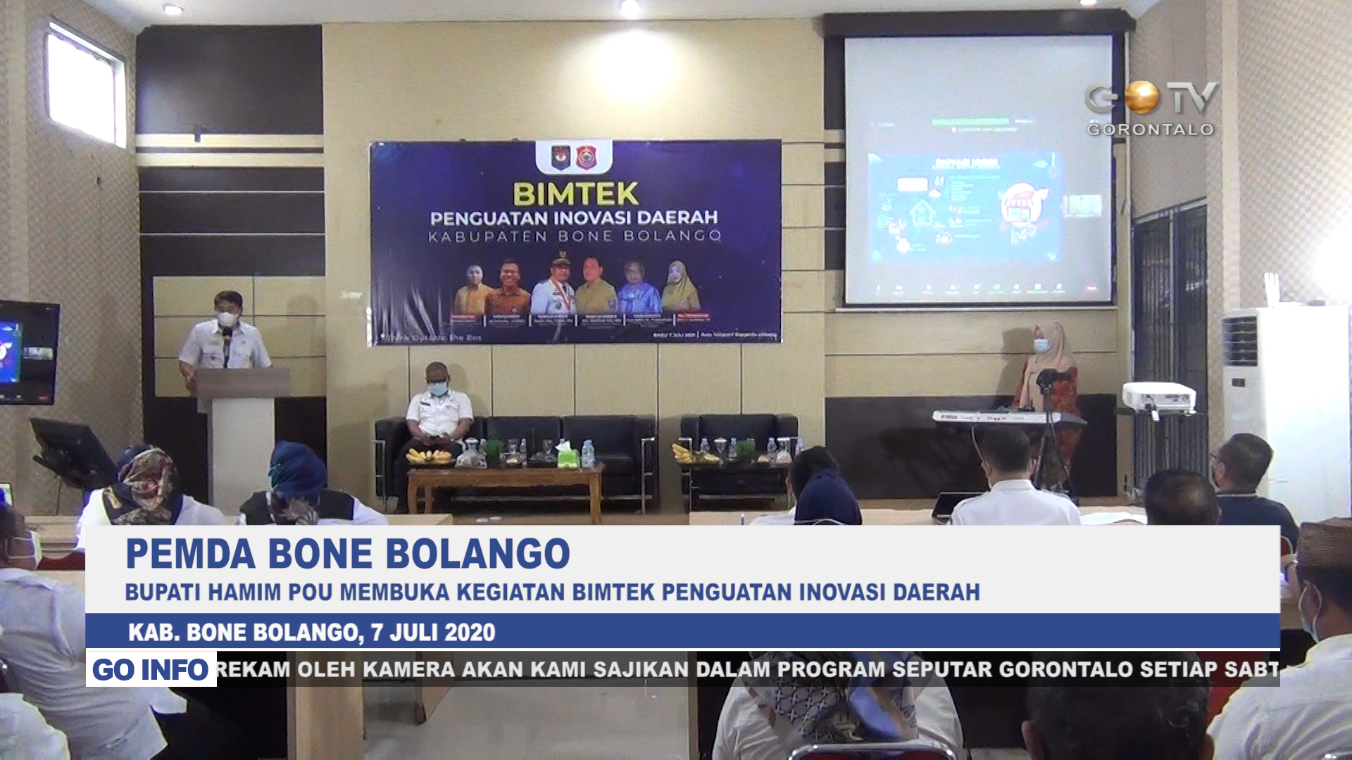 GOTV – Bupati Bone Bolango Hamim Pou membuka kegiatan Bimtek Penguatan Inovasi Daerah, yang berlangsung di ruang aula Kantor Bappeda Litbang Bone Bolango.