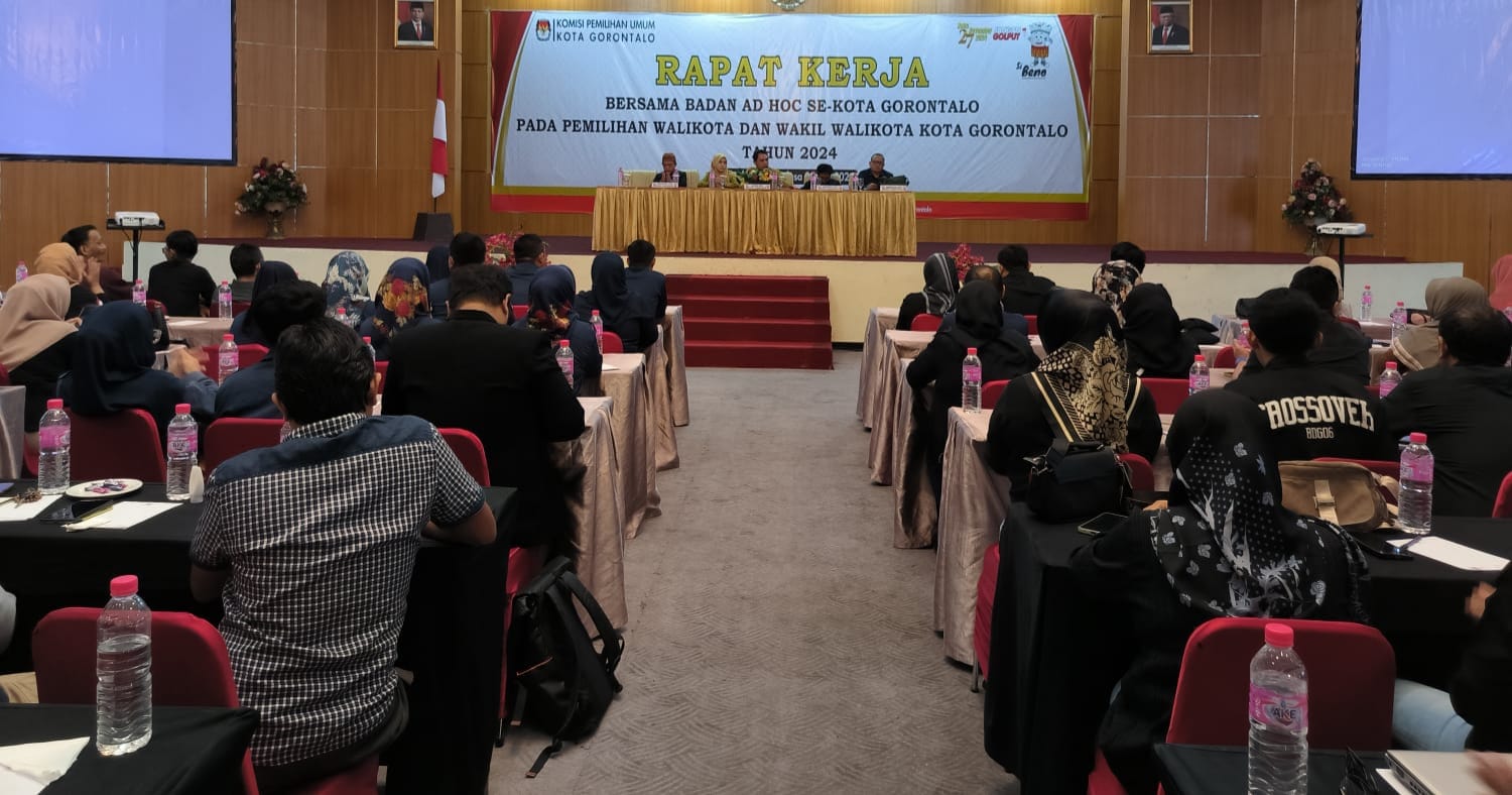 GOTV.Network.KPU Kota – Komisi Pemilihan Umum (KPU) Kota Gorontalo menggelar rapat kerja bersama Badan Adhoc (PPK dan PPS) se-Kota Gorontalo, rapat yang berlangsung di Hotel Damhil Kota Gorontalo ini di buka secara resmi Ketua KPU Kota Gorontalo, Muhammad Fadly Thaib. Selasa (28/5/2024).
