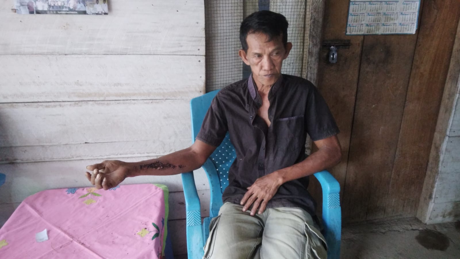 Seorang warga, Sudin Rahman (54) warga Desa Tahele Kecamatan Popayato Barat, harus dibawa ke Puskesmas setempat usai mengalami kecelakaan di lokasi Peti yang dikerjakan menggunakan alat berat (Excavator) milik Daeng Iwan. Kejadian itu membuat lengan kanan Sudin mengalami luka robek.