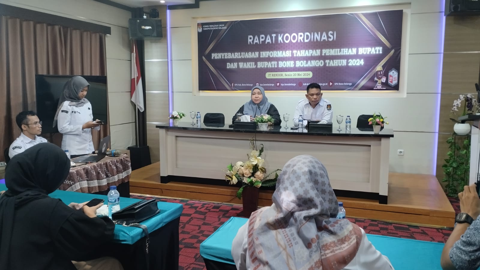 GOTV-network-Bonebol KPU Bone Bolango – Ketua Komisi Pemilihan Umum (KPU) Bone Bolango, Sutenti Lamuhu, membuka Rapat Koordinasi Penyebarluasan Informasi Tahapan Pemilihan Bupati Bone Bolango tahun 2024 yang berlangsung di IT Render, Senin, (20/5/24).