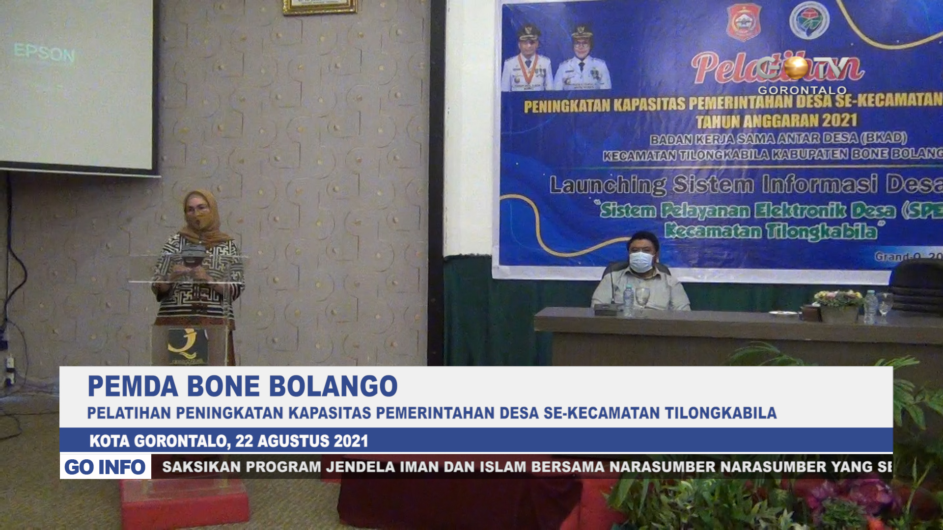 GOTV – Wakil Bupati Bone Bolango Merlan Uloli memberikan penguatan pada kegiatan Bimbingan Teknis Peningkatan Kapasitas Pemerintahan Desa Se-Kecamatan Tilongkabila, yang berlangsung diruang ballroom Hotel Grand Q Kota Gorontalo, (22/8/2021).