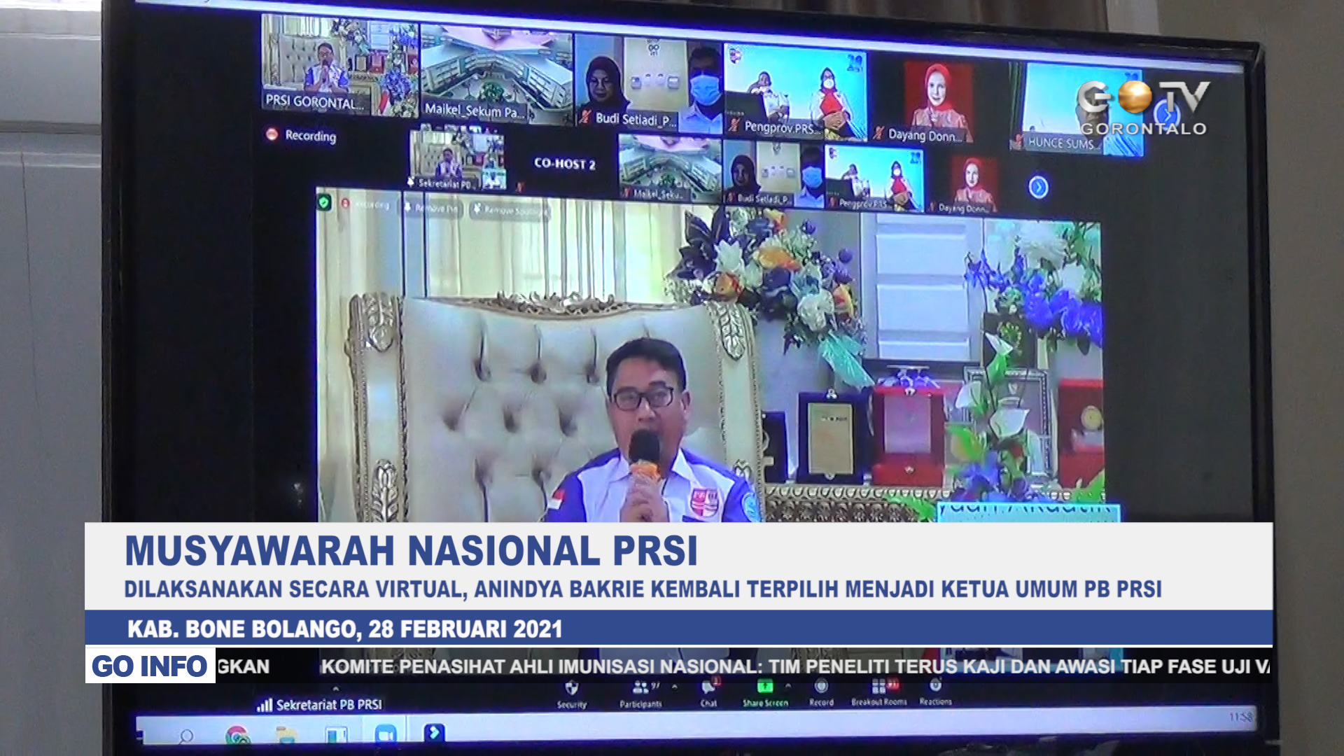 GOTV – Bupati Bone Bolango Hamim Pou selaku Ketua Pengprov Persatuan Renang Seluruh Indonesia (PRSI) Gorontalo beserta jajaran pengurus mengikuti Musyawarah Nasional (Munas) PB PRSI, yang dilakukan secara virtual. Munas PRSI diikuti 34 Pengprov PRSI. Hamim Pou dalam kesempatan ini menyatakan, jika Pengprov PRSI Gorontalo kembali mendukung Anindya Bakrie untuk menjadi Ketua Umum PB. PRSI untuk periode empat tahun kedepan.