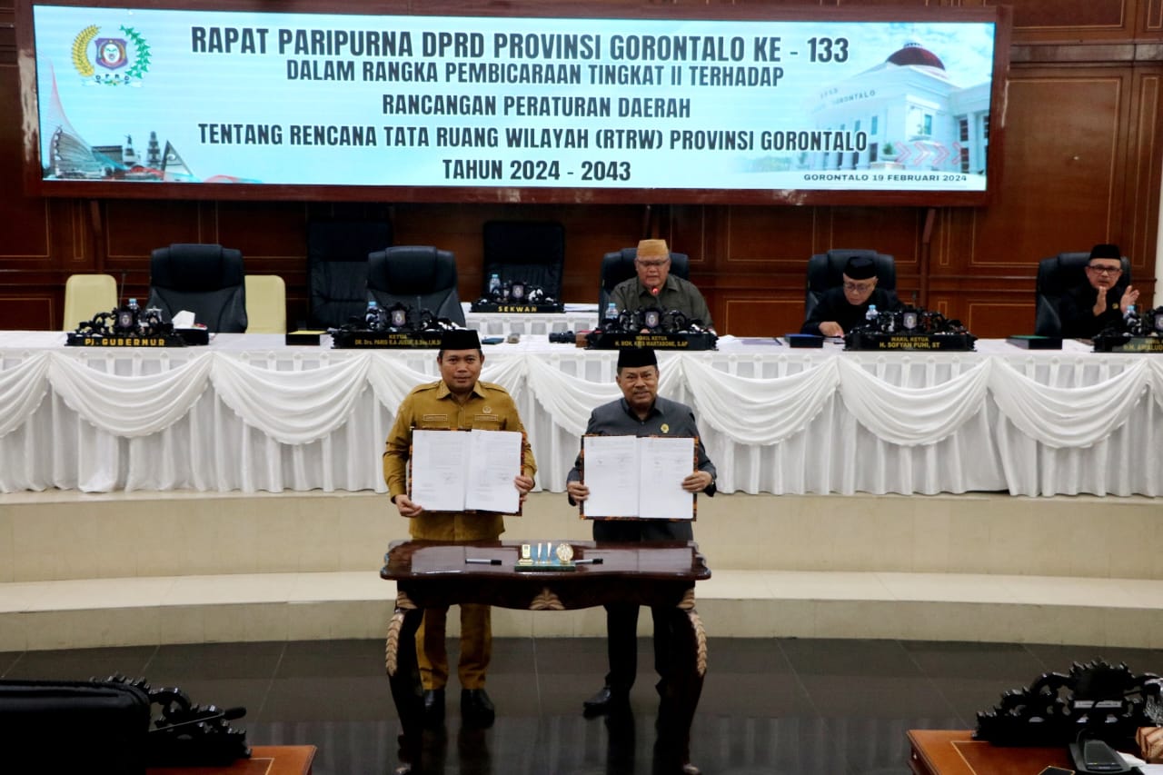 Ungkapan terima kasih dan penghargaan ini disampaikan langsung Paris Jusuf disaat dirinya memimpin pelaksanaan Rapat Paripurna DPRD Provinsi Gorontalo ke 133 dalam rangka pembicaraan tingkat II terhadap Rancangan Peraturan Daerah tentang Rencana Tata Ruang Wilayah (RT/RW)Provinsi Gorontalo tahun 2024-2043, yang berlangsung di Ruang Rapat Paripurna Kantor DPRD Provinsi Gorontalo. Senin (19/02/2024)
