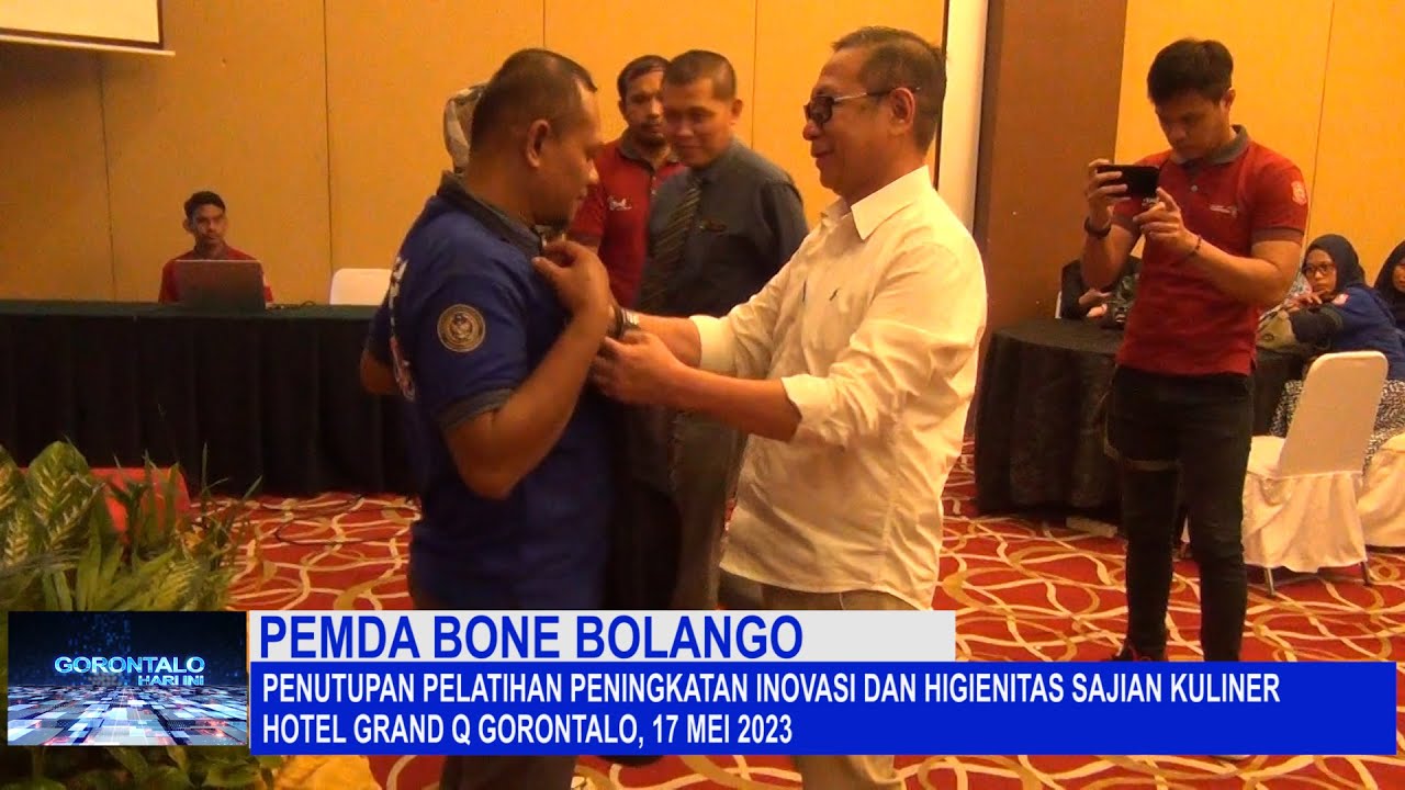 GOTV – Asisten Bidang Ekonomi, Pembangunan dan Sumber Daya Alam Pemda Bone Bolango Jusni Bolilio menutup kegiatan pelatihan peningkatan inovasi dan higienitas sajian kuliner, yang berlangsung di Hotel Grand Q Kota Gorontalo, Rabu (17/5/2023).