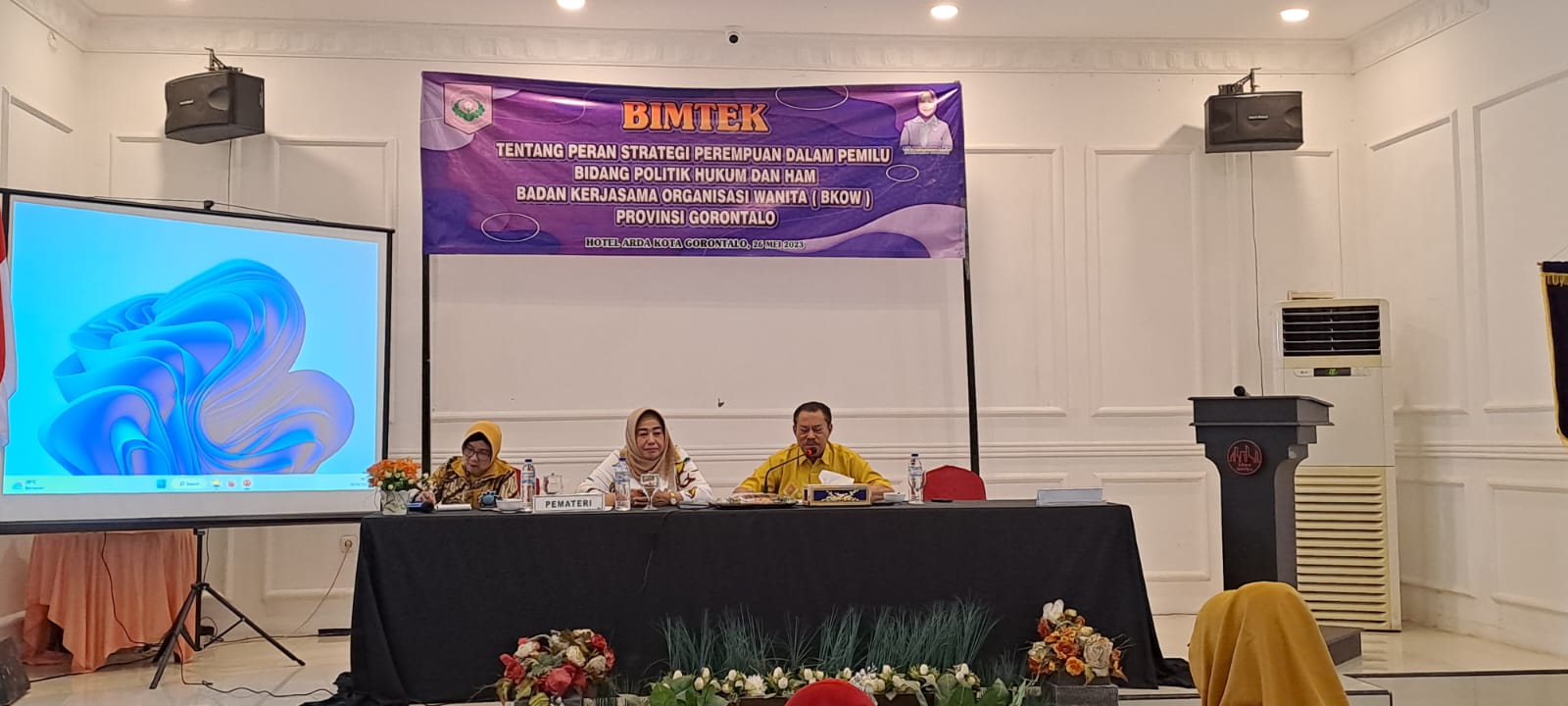 Hal inilah yang disampaikan Ketua DPRD Provinsi Gorontalo Paris Jusuf, disaat menjadi pemateri Bimtek tentang peran strategis perempuan dalam Pemilihan Umum (Pemilu) Bidang Politik Hukum dan Ham Badan Kerjasama Organisasi Wanita (BKOW) Provinsi Gorontalo, yang berlangsung di Hotel Arda Kota Gorontalo. Jum’at (26/05/2023)