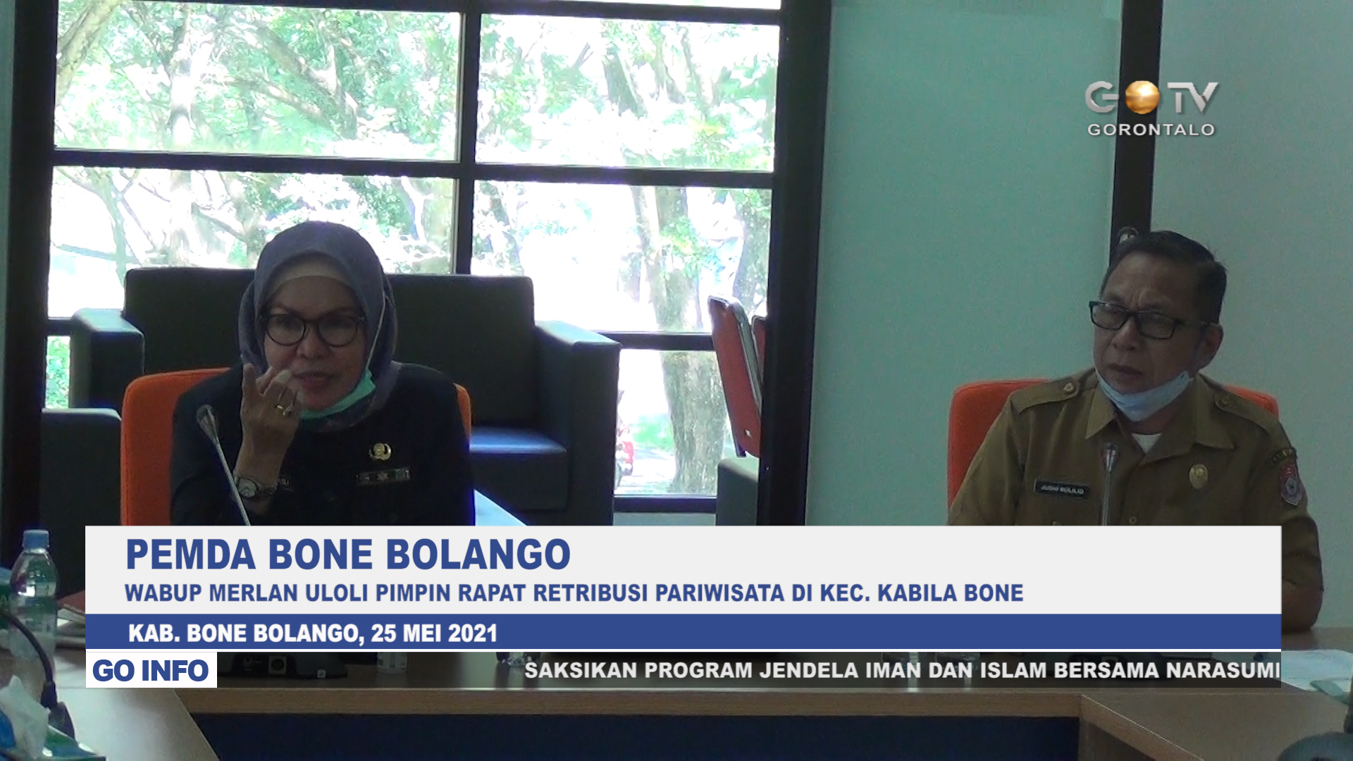 GOTV – Wakil Bupati Bone Bolango Merlan Uloli memimpin rapat retribusi pariwisata, yang berlangsung di ruang multifungsi Mal Pelayanan Publik (MPP) Bone Bolango. Rapat yang turut dihadiri Kadis Pariwisata, Kepala Badan Keuangan dan Pendapatan Daerah, Pemerintah kecamatan Kabila Bone, serta para pengelola wisata dan tokoh masyarakat Kabila Bone membahas mengenai rencana Pemda Bone Bolango memungut retribusi ke tempat wisata, khususnya yang ada di kecamatan Kabila Bone.