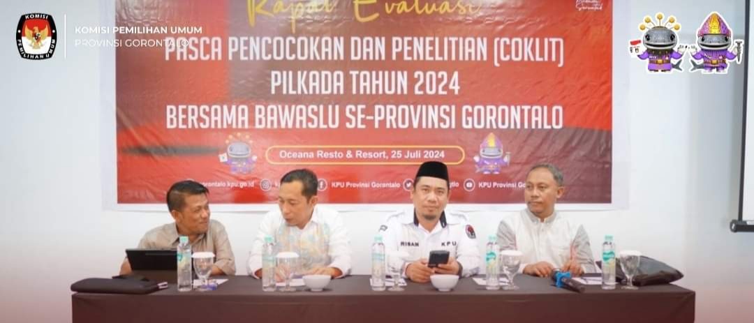 GOTV.Network.KPU – Dalam rangka Pemutakhiran Data Pemilih untuk Pemilihan Gubernur dan Wakil Gubernur, Bupati dan Wakil Bupati, serta Walikota dan Wakil Walikota Tahun 2024, KPU Provinsi Gorontalo melaksanakan Rapat Evaluasi Pasca Pencocokan dan Penelitian (Coklit) bersama Badan Pengawas Pemilu (Bawaslu) se-Provinsi Gorontalo. Kegiatan ini akan berlangsung pada Kamis, 25 Juli 2024, di Oceana Resto & Resort, Kota Gorontalo.