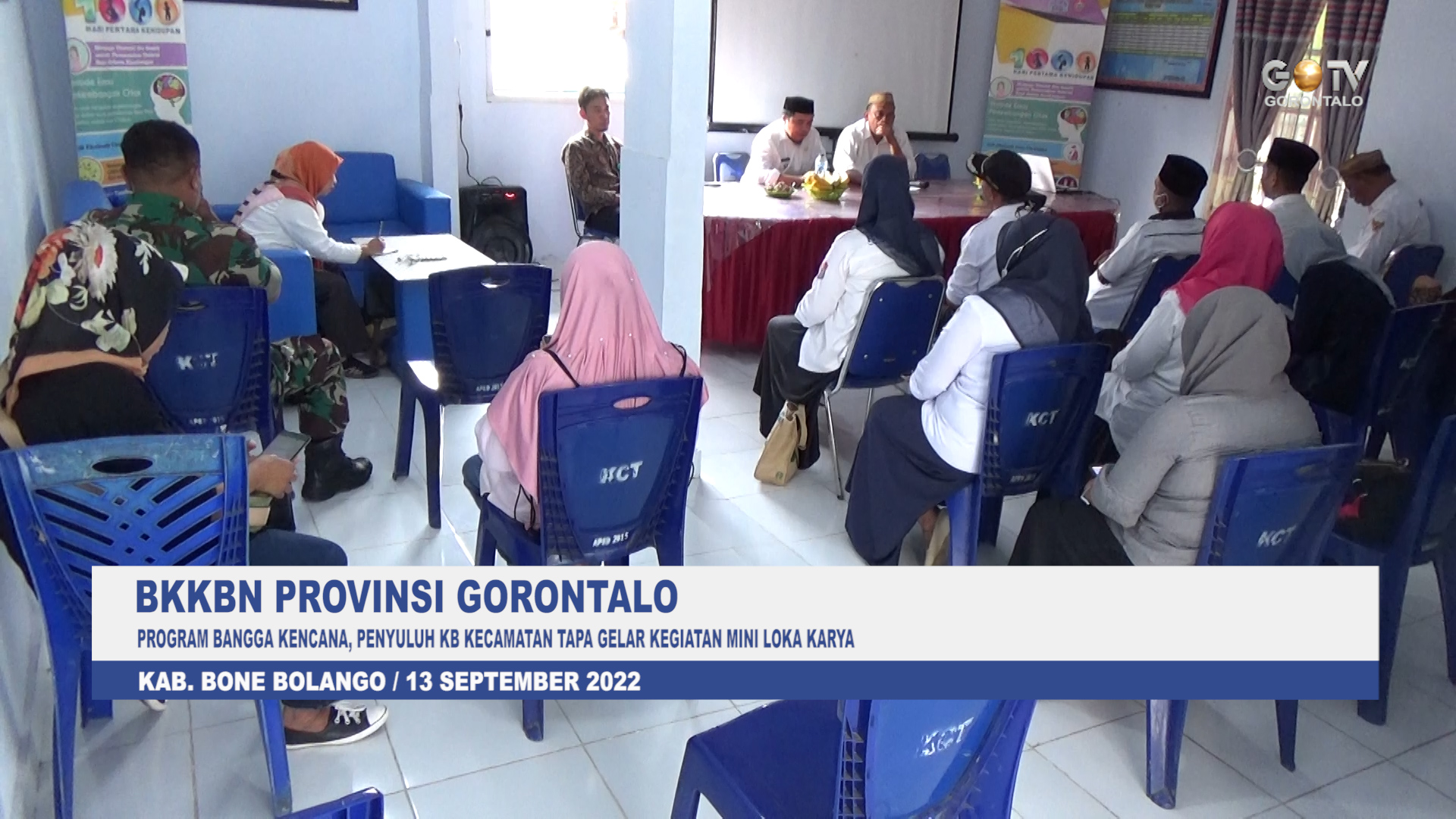 GORONTALO.TV.BoneBol – Dalam rangka mensukseskan Program Kampung Keluarga Berkualitas (Kampung KB) dan Dapur Sehat Atasi Stunting (DASHAT) yang menjadi motor penggerak angka penurunan stunting yang ada di Kabupaten Bone Bolango, Penyuluh Keluarga Berencana Kecamatan Tapa Kabupaten Bone Bolango menggelar kegiatan Mini Loka Karya Program Bangga Kencana tingkat Kecamatan Tapa, acara yang berlangsung di Balai Penyuluhan KB Kecamatan Tapa Bone Bolango ini di buka langsung Camat Tapa Sukriyanto Katili, Rabu (14/09/2022)