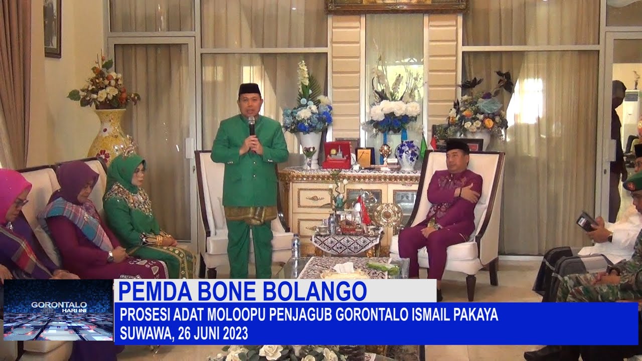 GOTV – Pemda Kabupaten Bone Bolango menggelar acara penyambutan adat Mopotilolo kepada penjabat Gubernur Gorontalo Ismail Pakaya. Mopotilolo yang berlangsung di rumah dinas Bupati Bone Bolango, Jumat (26/5/2023) dihadiri Bupati Bone Bolango Hamim Pou, Wakil Bupati Bone Bolango Merlan Uloli, Sekda Bone Bolango Ishak Ntoma, pimpinan OPD dan Forkopimda Bone Bolango.