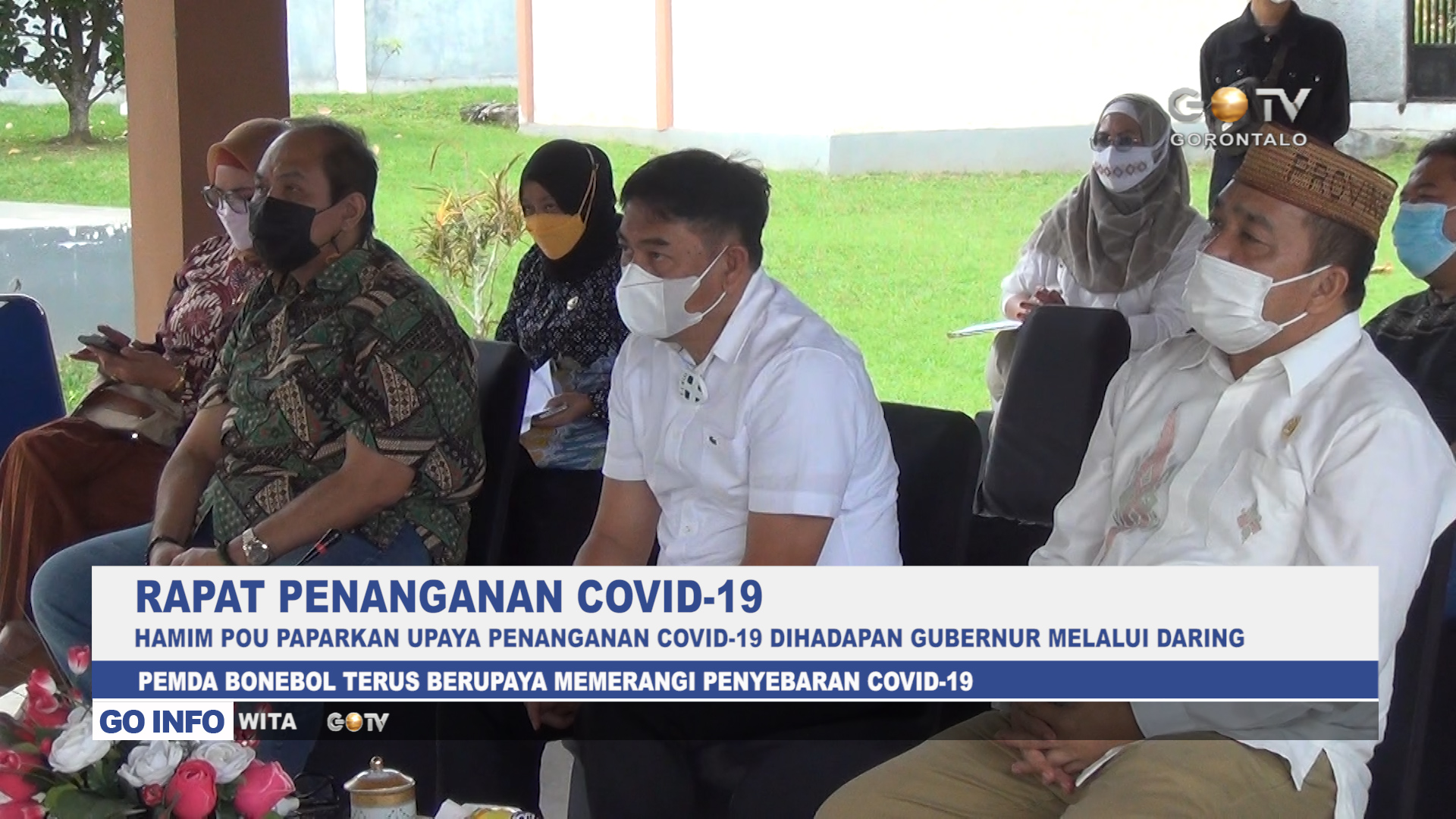 Hadir dalam kegiatan rapat yang berlangsung di Bandayo Rumah Dinas Bupati ini, yaitu Ketua DPRD Bone Bolango Halid Tangahu, Wakil Bupati Bone Bolango Merlan Uloli, Kapolres Bone Bolango, Kepala Kejakasaan Negeri Bone Bolango, perwakilan Kodim, serta diikuti secara daring oleh Forkopimda Provinsi Gorontalo dan Pemda Kabupaten Kota se-Provinsi Gorontalo.