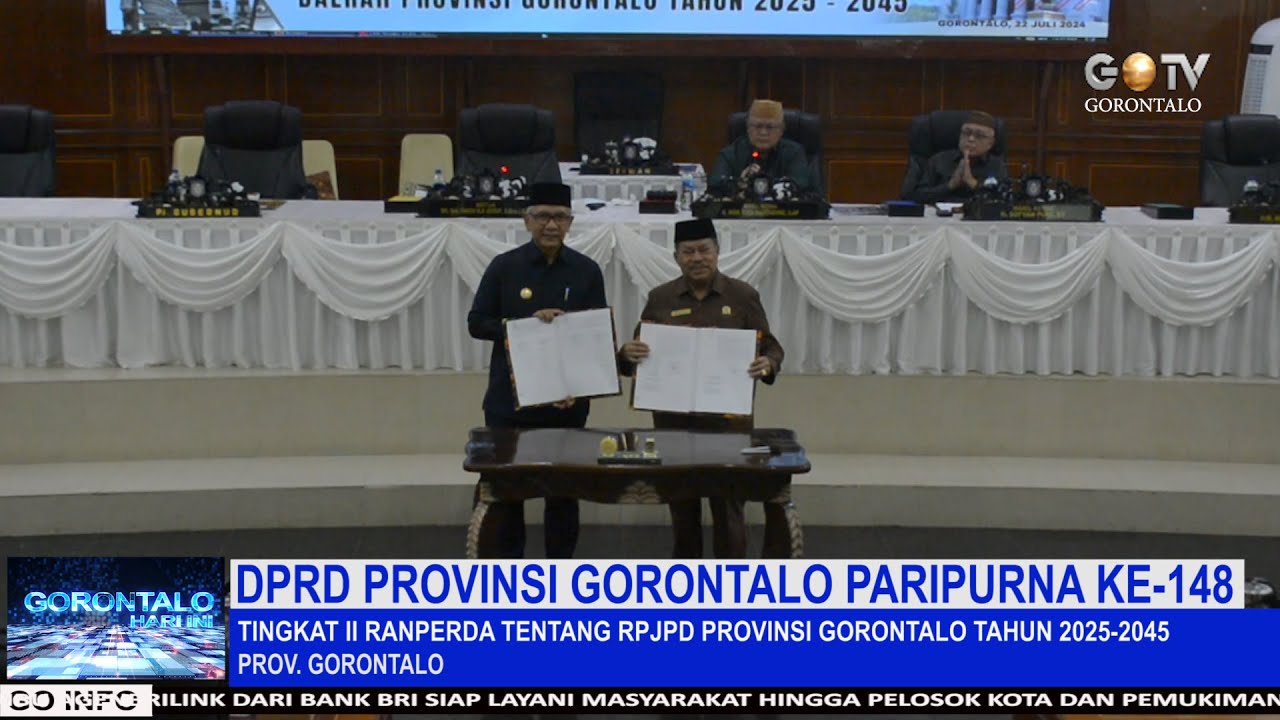 GOTV.Netwrok.Deprov – DPRD Provinsi Gorontalo menggelar Rapat Paripurna ke- 148 dalam rangka pembicaraan tingkat II terhadap Rancangan Peraturan Daerah Tentang Rencana Pembangunan Jangka Panjang Daerah (RPJPD) Provinsi Gorontalo tahun 2025-2045.