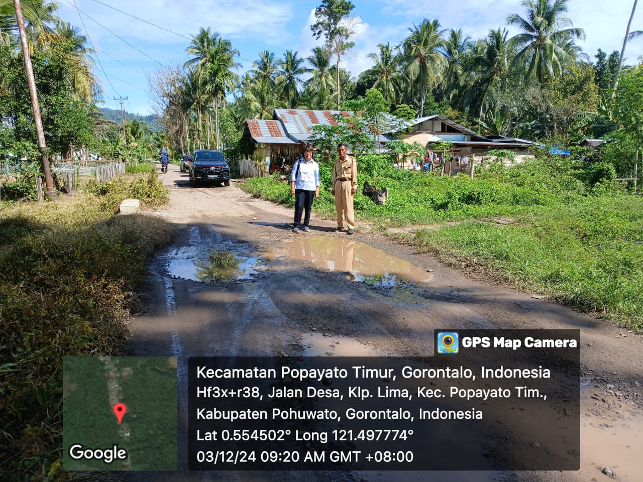 Anggota DPRD dapil 3 Jeni Tulung turun langsung ke Desa Kelapa Lima, Kecamatan Popayato Timur. Dengan didampingi Kepala Desa Kelapa Lima, Jeni meninjau kondisi jalan yang ada didesa tersebut.