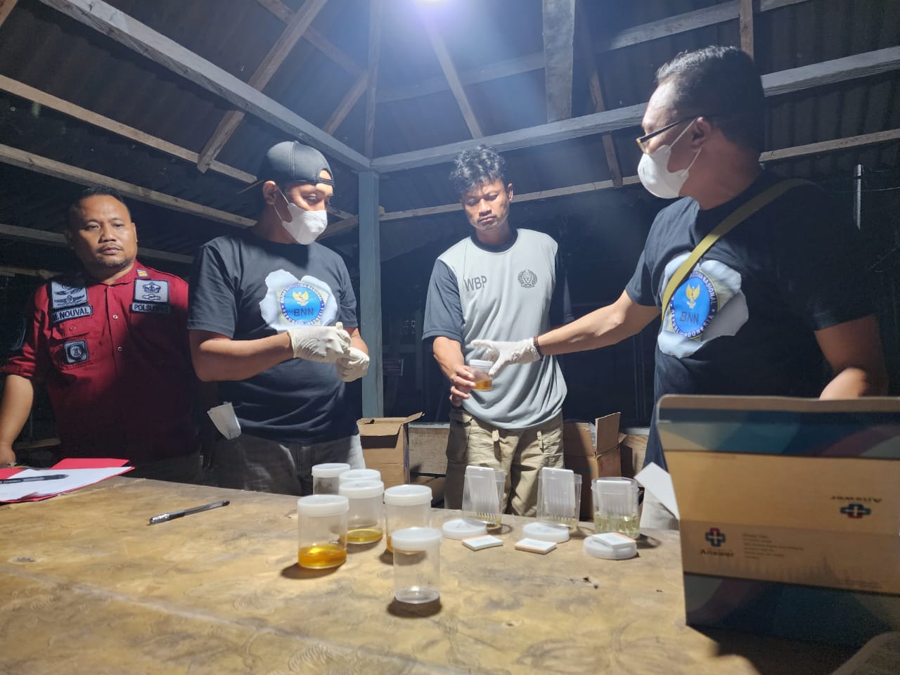 Selanjutnya dari hasil test urine, yang dilakukan secara acak terhadap 35 orang warga binaan, terbagi atas 25 orang napi kasus narkoba dan 10 orang napi  kasus pidana umum lainya, allhamdulilah hasil menunjukkan bahwa narapidana tersebut dinyatakan negatif dari pengguna narkotika.