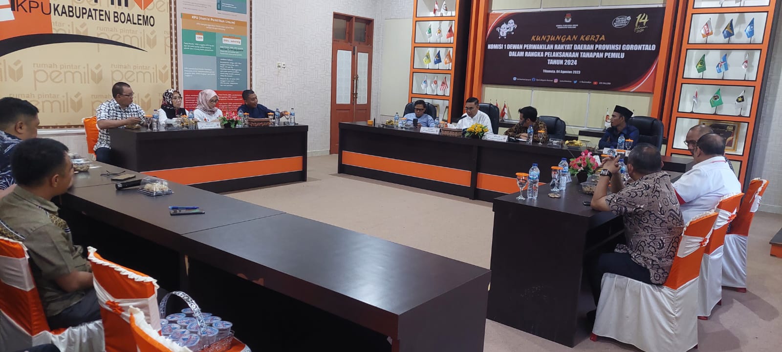 Gorontalo.tv.Deprov – Ketua Komisi I DPRD Provinsi Gorontalo AW Thalib memiliki perhatian serius terhadap aspek pembiayaan Pemilihan Kepala Daerah (Pemilukada), yang sudah menjadi tanggung jawab dan komitmen Pemerintah Daerah. Hal ini ia ungkapkan disaat Pimpinan dan Anggota Komisi DPRD Provinsi Gorontalo melakukan kunjungan kerja ke KPU Kabupaten Boalemo terkait tahapan penyelenggaraan Pemilu Tahun 2024. Jum’at (04 Agustus 2023)