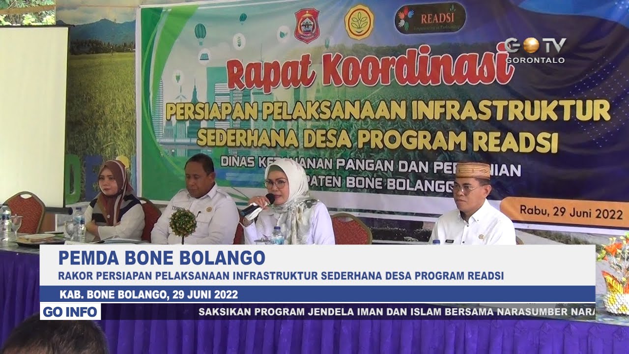 GOTV – Wakil Bupati Bone Bolango berharap kepada dinas Pertanian dan Peternakan Kabupaten Bone Bolango, untuk dapat memberikan data yang tepat terkait penanganan kemiskinan kepada para petani di Kabupaten Bone Bolango. Hal tersebut disampaikannya saat membuka kegiatan Rapat Koordinasi persiapan pelaksanaan infrastruktur sederhana desa program READSI (Rural Empowerment Agriculture Development Scaling up Innitiative), yang berlangsung di Kantor Dinas Pertanian dan Peternakan Kabupaten Bone Bolango, Rabu (29/6/2022).